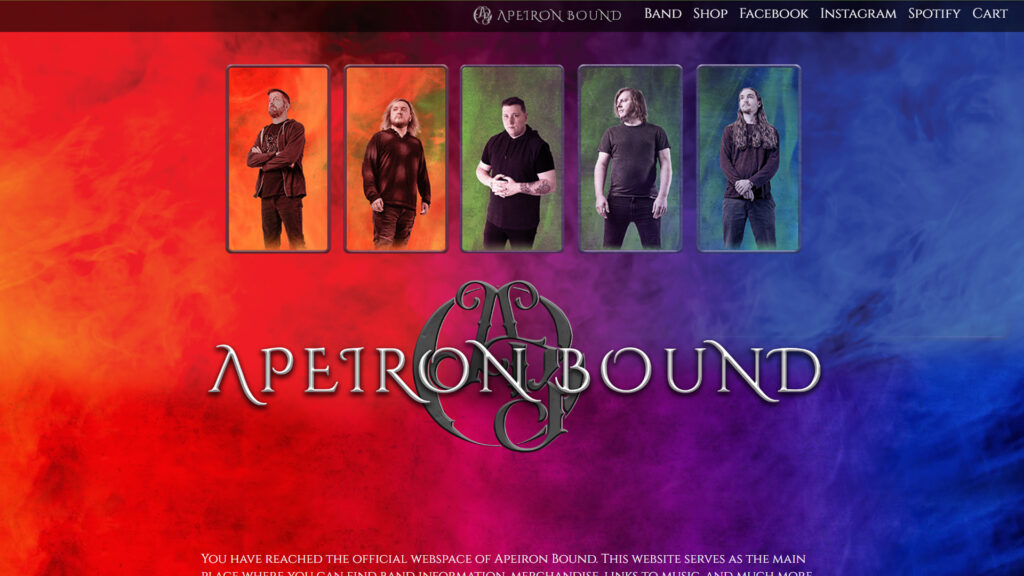 The official website for USA-based progressive metal band Apeiron Bound. A simple yet direct design that is meant to be connected to the most recent release of the band and to provide general information.