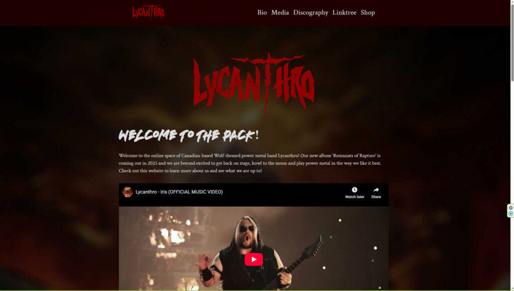 The main website for Canadian Power metal band Lycanthro, which serves as their main hub of information. The website needed to fit the style of the new album and the earlier releases, so the focus was finding a style that hit those beats properly. Also connected to social media feeds from multiple places.